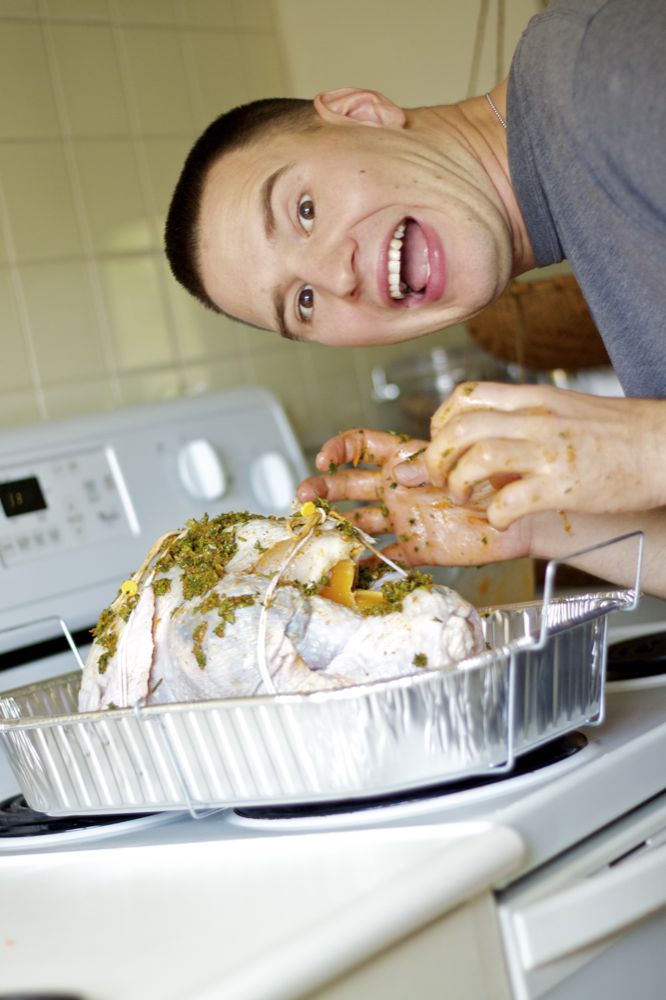 Dima stuffing the turkey with the citrus/parsley rub